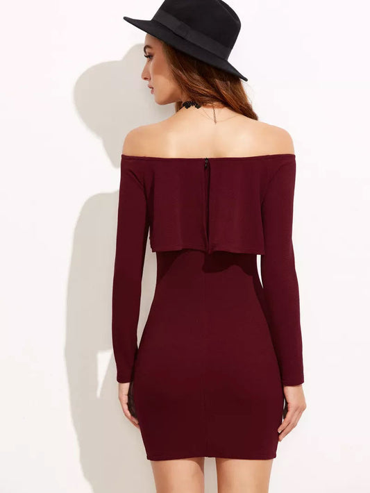 Burgundy Off The Shoulder Ruffle Bodycon Dress